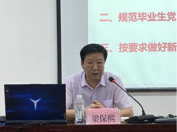 梁保熙老师从怎样认真做好《基层党组织活动记录》、规范毕业生党员档案材料、如何按要求做好新生党员档案审核工作等方面为切入点,强调了把握新时代加强基层党建工作的重要意义,系统梳理了党支部规范化建设、党员教育管理、落实党建责任制、促进党建与业务深度融合等重点任务。