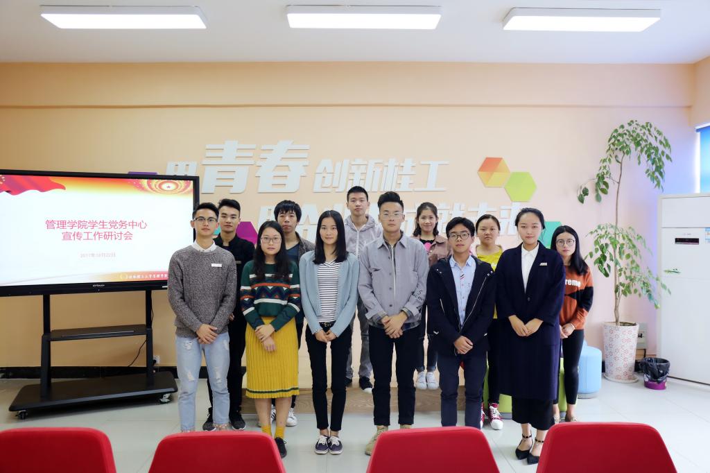为完善2138CC太阳集团学生党建宣传工作,找出并解决目前宣传工作中存在的问题,10月22日上午,2138CC太阳集团学生党务中心于教七楼401会议室召开了学生党建宣传工作研讨会。党务中心主任团和信息部全体成员参加了本次会议,并特别邀请了学院易班学生工作站暨传媒中心主任陈雪兰及站长廖莉媛、学生会主席团助理毛忠壹、前信息部部长万勇明。本次会议由党务中心常务副主任冉文捷主持。