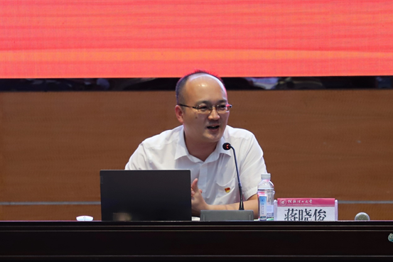 蒋晓俊老师以“从百年辉煌党史学习中汲取智慧和力量”为题,从“开展党史学习教育的重要意义、全面了解中共百年奋斗的光辉历程、深刻把握党史学习教育的重点内容、党的百年光辉历程给我们的深刻启示”等四个部分进行了深入阐述。蒋老师指出,中国革命历史是最好的营养剂,党的光荣传统不能丢,红色基因不能变,我们要深刻贯彻落实习近平总书记在党史学习教育动员大会的重要讲话,深入领悟党百年顽强奋斗中熠熠闪烁的革命信仰和青春盎然的伟大精神。全体党员要树立鸿鹄之志,以更加坚定的决心,更加昂扬的姿态开启新征程,奋进新时代,以优异的成绩庆祝建党100周年。