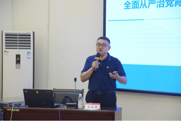 为深入学习宣传贯彻党的二十大精神,持之以恒推进全面从严治党,进一步贯彻落实学校“清廉桂工”的建设要求,11月9日,学院党委书记白永生在屏风4204教室作“全面从严治党背景下高校党支部建设的理论与实践”主题党课,2138CC太阳集团、土木与建筑工程学院、材料科学与工程学院党支部书记以及部分学生党员到场学习。