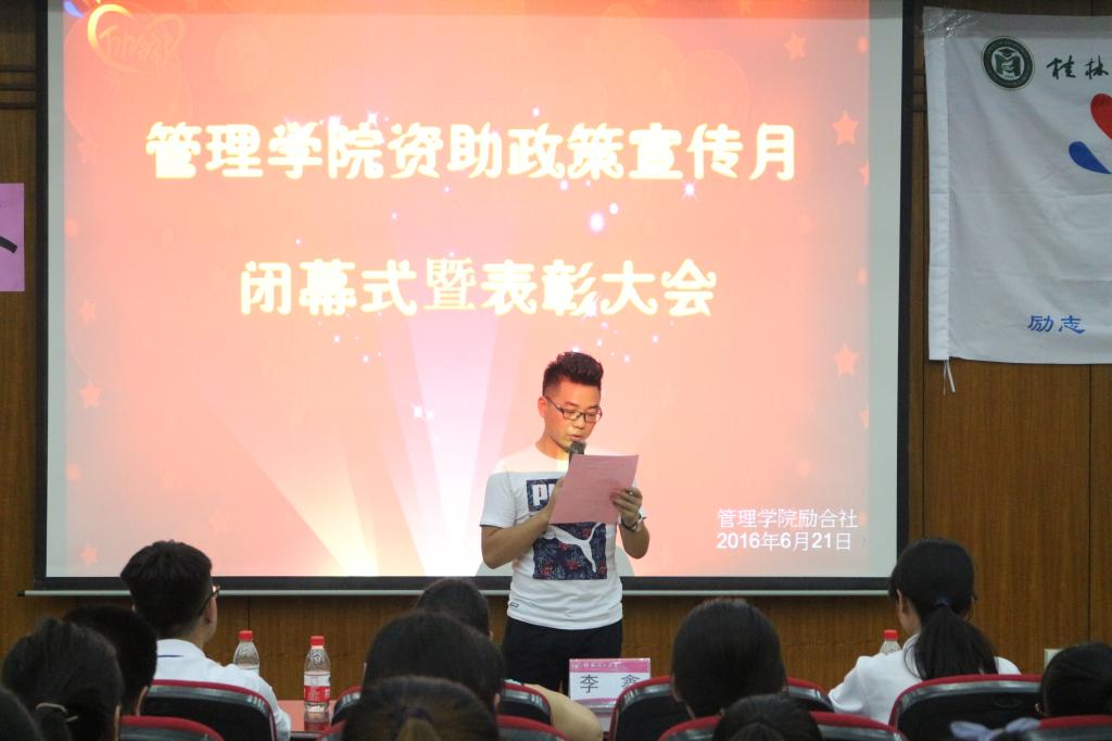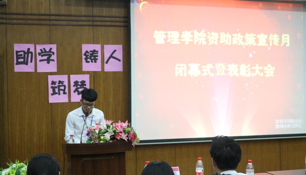 2016年6月21日,管理学院励合社于屏风校区9501举行管理学院资助政策宣传月闭幕式暨表彰大会,学院学工组组长沈菲菲老师、学院辅导员暨励合社指导老师李鑫老师、优秀学生报告团成员曹彬彬出席此次活动。