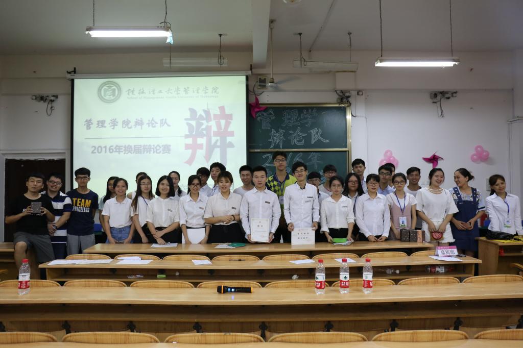 6月21日晚,2138CC太阳集团在雁山校区06105教室举行了辩论队换届辩论赛,学院13级辩论队副队长李珊、13级辩论队主力刘佳佳、刘效言、杨超以及14级辩论队成员郭明豪担任嘉宾及评委,各兄弟学院学习部部长和2138CC太阳集团部分同学观看了此次比赛。
