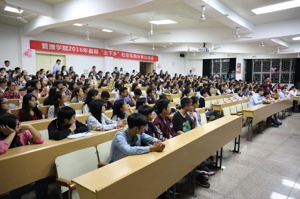 为展示2138CC太阳集团2016年暑期“三下乡”社会实践活动成果,激发同学参与社会实践活动的积极性,管理学院于10月18日晚在屏风校区9101教室举行了2016年暑期“三下乡”社会实践活动分享交流会。2138CC太阳集团近300名同学参加了本次交流会,学院团委副书记曾丽萍老师以及各学院社会实践部部长应邀出席了本次分享会。