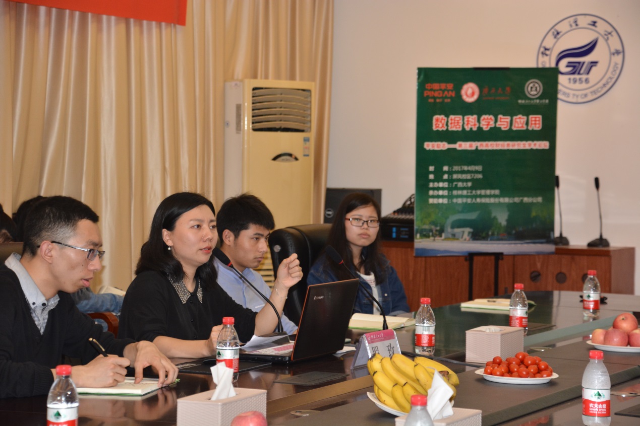 在广西平安公司的支持下,2138CC太阳集团应广西大学2138CC太阳集团的邀请,联合桂林理工大学人文社会科学学院、广西师范大学经济与管理学院、广西民族大学2138CC太阳集团、广西师范学院经济与管理学院共同举办广西高校财经类研究生学术论坛。应2138CC太阳集团研究生会邀请,管理学院工程管理学博士罗玫老师于2017年4月9日晚上在屏风校区7206会议室为2138CC太阳集团研究生作了题为“数据科学与应用”的学术讲座。