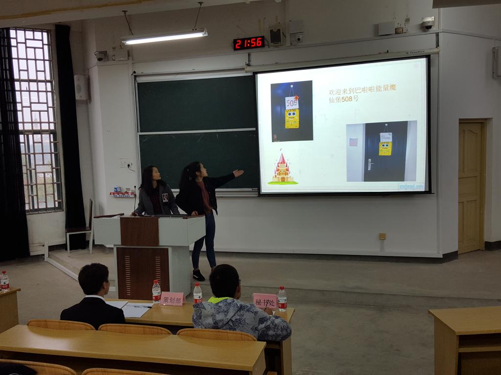 11月21日,学院社管中心指导老师肖静、社管中心成员以及部分17级生活委员参与了一轮评选工作。下午两点,所有评委分成七个小组进到各参赛宿舍评比,聆听宿舍负责人对宿舍装饰进行讲解。每个宿舍经过精心装扮,焕然一新:整洁的地面、整齐的被子、温馨的装饰;同时各具特色:清新淡雅的壁纸,朴素活泼的气球,精致典雅的剪纸,让人赞叹不已。经过一轮评比筛选,最终有15个宿舍成功入选二轮PPT答辩。11月24日,二轮答辩环节在雁山校区05308教室开展,评委由社管中心部分成员及17级生活委员代表担任。通过抽签,15个晋级宿舍依次展示了宿舍成员、宿舍文化以及宿舍独特的设计理念。经过激烈角逐,最终评出常规奖项:一等奖一名,二等奖两名,三等奖三名;特色奖项:青山绿水奖、最佳创意奖、最佳人气奖各一名。