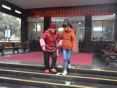 励合社成员陪伴养老院奶奶散步