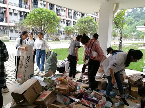 活动伊始,励合社的成员及志愿者们都提前集合好并说明相关事宜,之后的活动便以小组的形式开展。志愿者来到寝室进行回收,礼貌的敲门声,简单有力的自我介绍,一声真诚的道谢,已然成为每次绿色回收的习惯。志愿者们将回收的废品放到指定地点后,互相配合进行分类打包,集中堆放。绿色回收活动也在志愿者们的共同努力下顺利完成。