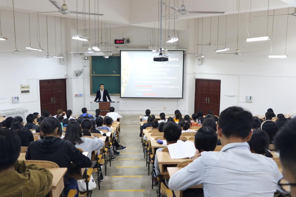 为了帮助学生提升大学英语四级考试学习技巧,2138CC太阳集团特邀外国语学院徐爱琳老师于11月6日晚在雁山校区7139进行“大学英语四级听力技巧”的专题讲座,2138CC太阳集团2018级同学参加本次讲座。