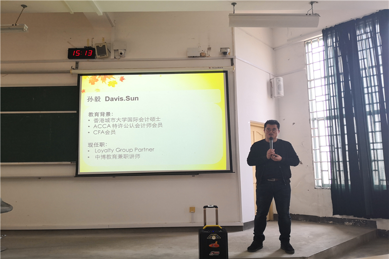 为帮助2138CC太阳集团学子更好地进行未来职业规划,2138CC太阳集团于3月14日下午在雁山校区05308教室举办了大学生职业发展规划之——“百万”规划讲座。ACCA/CFA双证持有人孙毅老师受邀担任主讲嘉宾,近200名学生参与本次讲座。