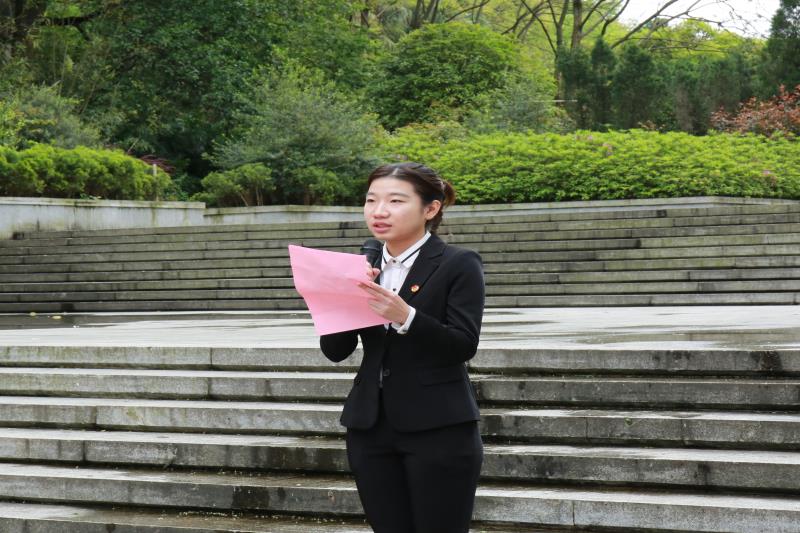 活动伊始,由校团委学生副书记谭明灿讲解本次活动的背景与目的,并宣布烈士祭扫仪式开始。奏唱国歌后,材料科学与工程学院团委书记赵思聪老师介绍了烈士英雄事迹,意在让同学们铭记历史,铭记英雄精神。接着,全员默哀一分钟,在庄严肃穆的仪式中接受精神洗礼。随后,2138CC太阳集团学生骨干代表王昕怡发言,她倡议当代大学生应当自觉学习革命英雄事迹,继承和弘扬爱国主义精神,为实现中华民族伟大复兴的中国梦而努力奋斗。随后,土木与建筑工程学院团委书记姚慧老师带领全体学生骨干重温入团誓词。最后,2138CC太阳集团团委副书记莫媛老师进行讲话,她对在场的所有学生骨干指出了三点希望:一是要缅怀革命先烈,传承红色精神;二是要牢记历史使命,弘扬爱国精神;三是要胸怀远大理想,同心共筑中国梦。至此,本次清明祭扫活动圆满结束。