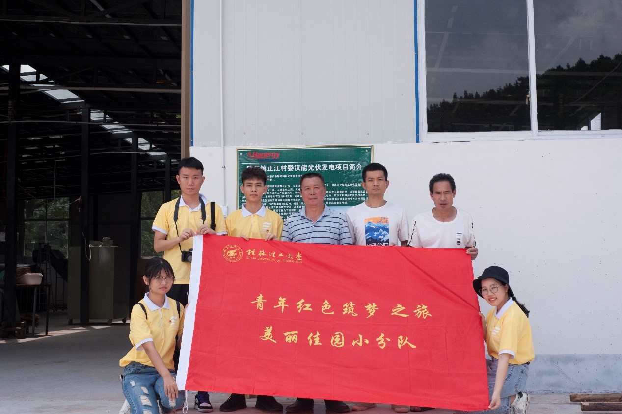 随后,桂有佳园实践团队来到正江村委脱贫致富支柱——汉能光伏发电厂,该电厂在书记蒋廷德的帮扶下,现今已带动多户人家脱贫。经过详细了解,桂有佳园团队成员认为该项目具有重大战略意义,光伏发电厂不仅使土地得到有效利用,还实现能源可持续,符合国家节能减排发展新能源的政策,也可为正江村的村民集体经济作出卓越贡献。