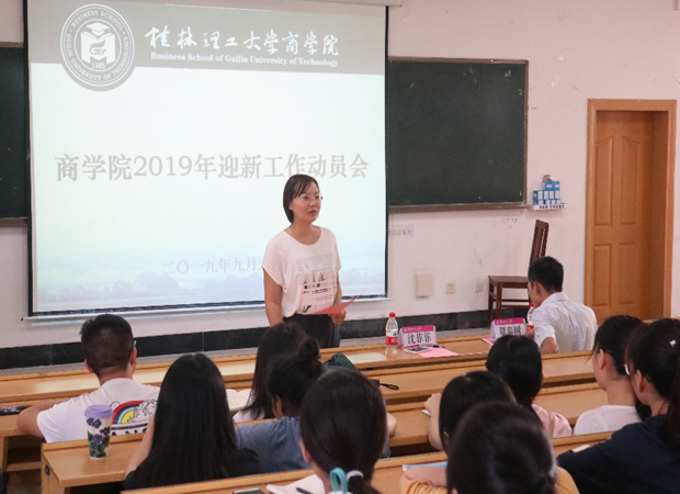 会上,19级辅导员覃泰树老师首先对参与本次迎新工作的学生干部和志愿者表示感谢,并介绍了2019级迎新的相关事项及迎新工作的人员和时间分配,强调了新生报名的流程事宜。接下来,学院党委副书记沈菲菲就迎新工作强调了几点:一是要求各位学生干部服从安排,听从指挥,为学生、家长提供更多帮助。二是安全有序,确保人身、财物安全;三是要求遵守纪律,迎新期间严禁涉及推销、兜售等不良行为。四是注重仪表,树立迎新人员良好形象。