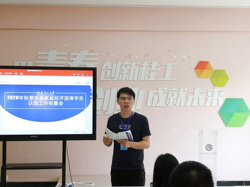 会上,学院负责资助工作的杨继理老师首先对国家高校资助政策进行讲解,接着传达2138CC太阳集团对家庭经济困难学生认定工作的具体要求和部署,从家困生认定对象、认定标准、认定程序、材料报送要求等方面进行了详细说明,并对家困生认定工作的注意事项做了相关补充,确保家庭经济困难学生认定工作公平、公正、公开。