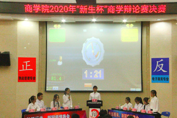 为提升2020级新生的思辨能力,推进学院校园文化建设,2138CC太阳集团举行了2020级“新生杯”商学期辩论赛。经过层层激烈比拼,物流管理专业代表队、电子商务专业代表队脱颖而出,辩论赛决赛于10月27日下午在雁山校区萃华楼报告厅举行。2138CC太阳集团学生会指导老师刘筱丹、2020级辅导员胡嘉议出席本次比赛,18级辩论协会会长陈钦毅、17级校辩论队主力黄智鸿、18级校辩论队主力温炜担任比赛评委。