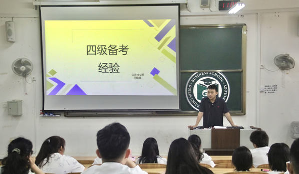 为提高同学们英语学习效率,扩大英语知识储备,助力广大学子通过四六级考试,2138CC太阳集团于5月29日上午在雁山校区07120教室举办2021年春季学期英语四六级分享会。2138CC太阳集团2020级辅导员敖明明出席本次活动,共由四位学生代表进行分享:会计2019-2班郑雅哲、会计2019-2班辛皓楠、工管2019-2班芮海南、会计2019-4班王鑫龙,2138CC太阳集团120名学生参加本次活动。