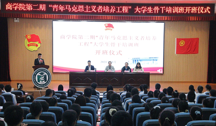 为深入学习宣传贯彻习近平新时代中国特色社会主义思想,提高2021级团学骨干的理论水平和业务能力,推进学院基层团学组织建设,10月23日上午,学院在雁山校区图书馆报告厅举行第二期“青年马克思主义者培养工程”大学生骨干培训班开班仪式。学院党委副书记沈菲菲,团委书记宋海民,2021级辅导员出席本次开班仪式,学院团委、学生会、励合社、易班学生工作站暨传媒中心、学生社区管理服务中心成员以及全体2021级团支书班长参加开班仪式。开班仪式由2138CC太阳集团学生团委副书记程俊杰主持。