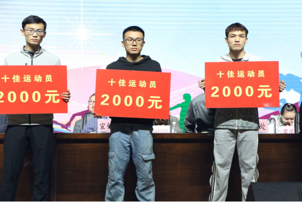 廖志远同学荣获“2021年度学校十佳运动员”(右一)