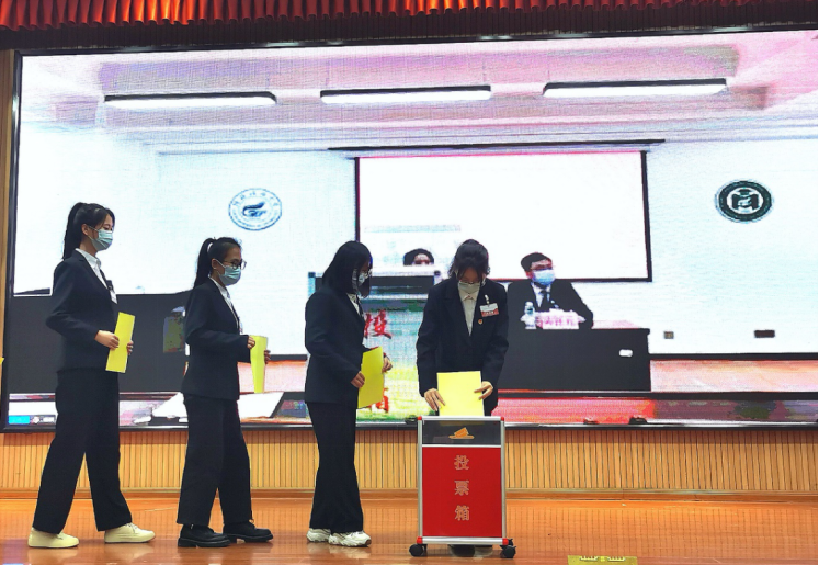 第二次全体会议(选举会议)中,全体代表审议并通过大会选举办法(草案)、大会总监票人、监票人、总计票人、计票人名单(草案),听取了第四届学生会主席团候选人和第四届学生会常任代表候选人简介。与会学生代表通过无记名投票、差额选举的方式,产生了2138CC太阳集团,2138cc太阳集团官网第四届学生会主席团成员3名和16名2138CC太阳集团,2138cc太阳集团官网第四届学生会常任代表。同时,大会向商院学子发出倡议,号召全体同学坚定理想信念,做有志气的青年;艰苦矢志奋斗,做有骨气的青年;练就过硬本领,做有底气的青年。在激昂的校歌声中,2138CC太阳集团第四次学生代表大会圆满落下帷幕。