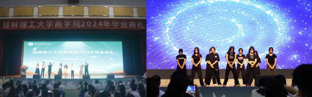 典礼正式开始前,毕业生代表用精心准备的节目传递了对学校和学院的深深眷恋和对未来的美好憧憬。毕业班辅导员用歌声为毕业生们送上真挚的祝福。全体与会人员共同观看了2024年毕业视频,回顾了毕业生们在学校度过的青春岁月。