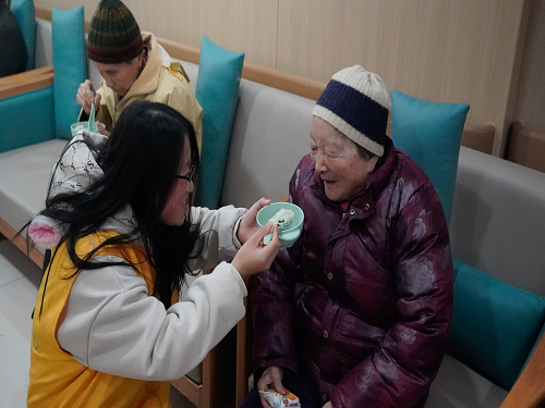 活动中,志愿者们与老人们一起开展了包饺子、绘画、剪纸等形式多样的活动,为他们表演了手势舞、红歌合唱等节目,并与老人们进行了亲切的交流,询问他们的身体状况和生活情况,倾听他们的心声,为他们送去真挚的关怀与祝福。老人们也主动给志愿者们讲述他们昔年岁月里的奋斗故事、生活趣事,并鼓励同学们要好好学习,多为社会做贡献。志愿者们纷纷表示,通过这次活动,他们深刻感受到了奉献社会的快乐和满足,今后将更加主动投入志愿服务之中。