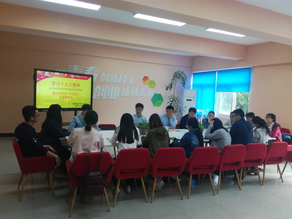 为全面贯彻落实党的十九大精神,深入学习新党章,2017年11月6日下午,房产学生党支部于屏风校区7401路演中心召开理论学习会,房产学生党支部全体党员出席了本次会议。会议由房产学生党支部第一书记肖静老师主持。