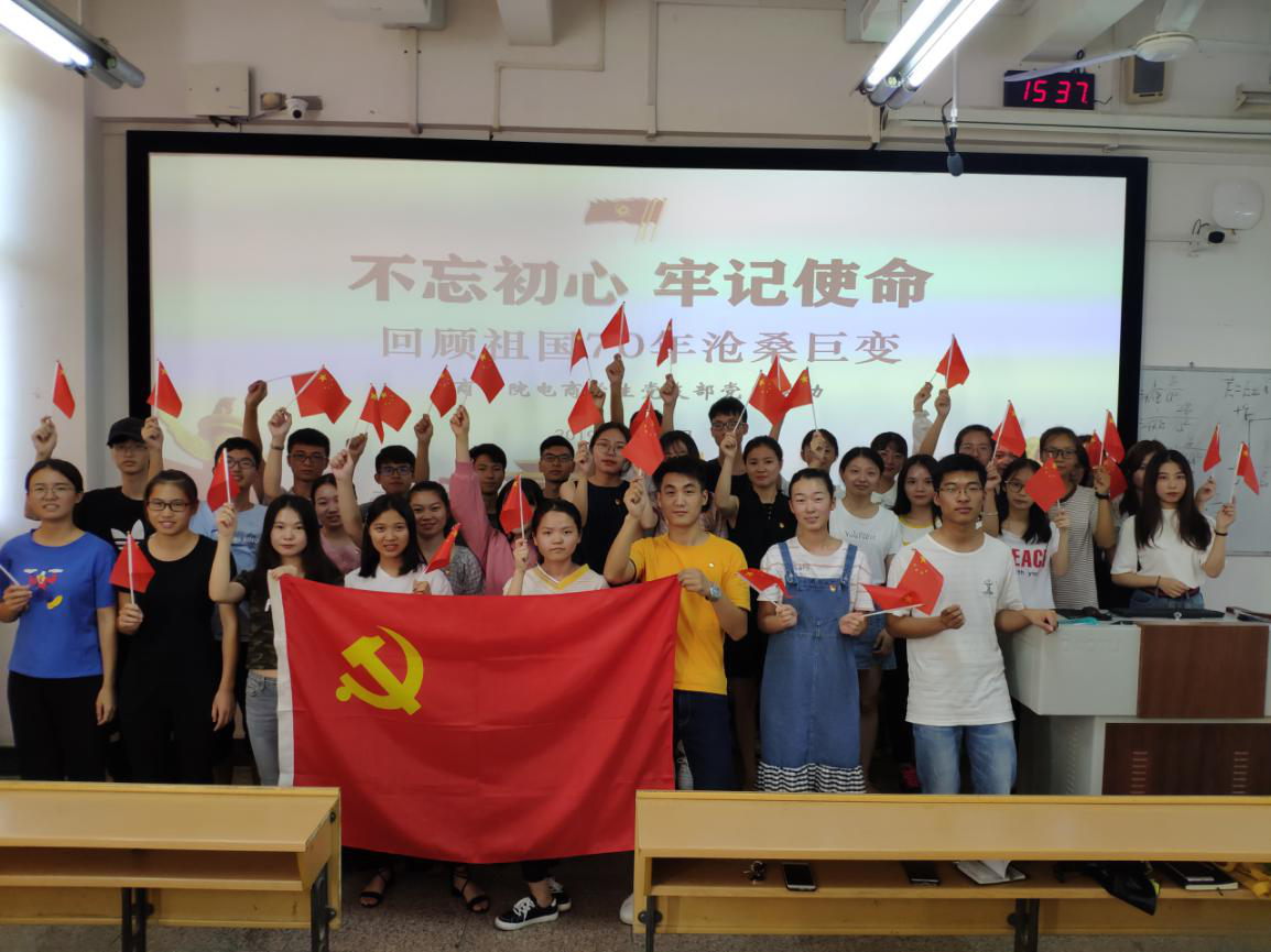 为庆祝新中国成立70周年,深入学习贯彻习近平新时代中国特色社会主义思想,2019年9月24日,电商学生党支部于09109开展了以“不忘初心、牢记使命”为主题的党日活动。