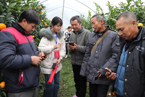 户外实操中团队成员与农户亲切交流