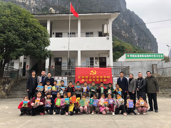 为积极助推脱贫攻坚和乡村振兴战略,深入践行“扶贫必扶智”的理念,12月8日下午,学院教工第五党支部赴桂林市阳朔县葡萄镇,开展了一次支部主题党日活动,支部全体党员参加。