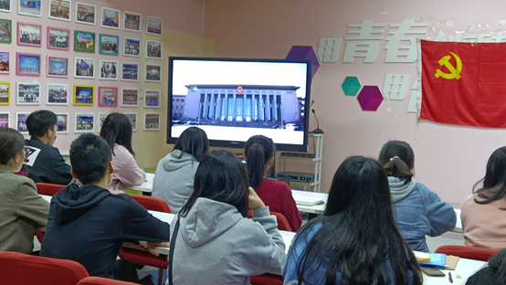 活动之初,同志们一起观看了《榜样五》视频。随后,谢浩东同志围绕中国共产党从成立至今具有代表性的历史事件进行PPT讲解。徐织、蒙丽琼等七位同志对此次活动发表了自己的感悟,表明了当代大学生应在党的领导下积极奉献自身力量的观点。随后,鞠雅文同志和宁忠欣同志发言表示:支部同志要坚定政治立场、紧跟时代潮流。活动最后,支部书记岑甜甜老师对此次活动进行了总结。她说,我们的幸福生活来之不易,应该不忘初心,铭记历史,并希望各位同志未来能够进一步加强理论知识学习,不断提高政治素养。