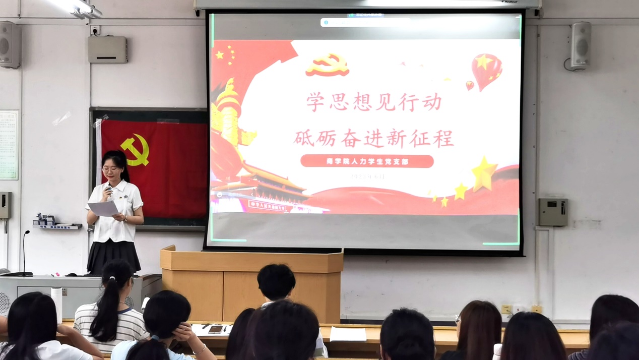 为学习和贯彻习近平新时代中国特色社会主义思想,加强理论武装,提高支部同志的思想觉悟。2023年6月26日,人力学生党支部在屏风校区9111教室开展了“学思想见行动,砥砺奋进新征程”主题党日活动。