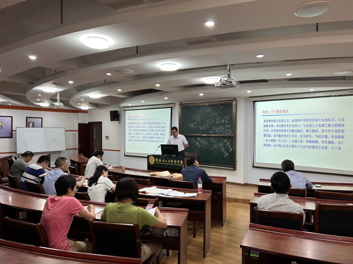 接着支部党员围绕学习体会开展微党课。罗薇同志结合本人的专业和研究兴趣,首先做了题为《推动网络强国和数字化中国实现中国式现代化》的微党课,从“深入学习领会习近平总书记关于网络强国的重要思想,牢牢把握以网络化、数字化建设引领中国式现代化的使命任务”“充分认识新时代网络强国、数字中国取得的伟大成就,坚定加快网络强国、数字中国的信心、决心”“奋力开拓新时代网络强国,数字中国建设的新局面”三个方面介绍了学习的心得体会。卜正学同志分享了《马克思主义与中华优秀传统文化相结合》的微党课并分享了自己的学习体会。卜正学同志结合党的二十大报告中“两个结合”的第二个结合“马克思主义和中华优秀传统文化的结合”进行了讲解,认为这是对中国共产党马克思主义中国化的又一次深刻、系统总结,是一次重大的理论创新。卜正学同志通过中华优秀传统文化中的如“天下为公”“民为邦本”“为政以德”“天人合一”“厚德载物”等大量的思想元素与马克思主义思想契合的具体实例,充分地展示了为什么马克思主义思想会和中国的优秀传统文化很好地结合,以及通过具体的历史事例,说明了这种结合如何导致了马克思主义中国化并指导中国共产党的革命实践。卜老师的解读加深了大家对党的二十大报告的理解,并且让大家懂得,中国特色社会主义和中华优秀传统文化结合的重要意义。