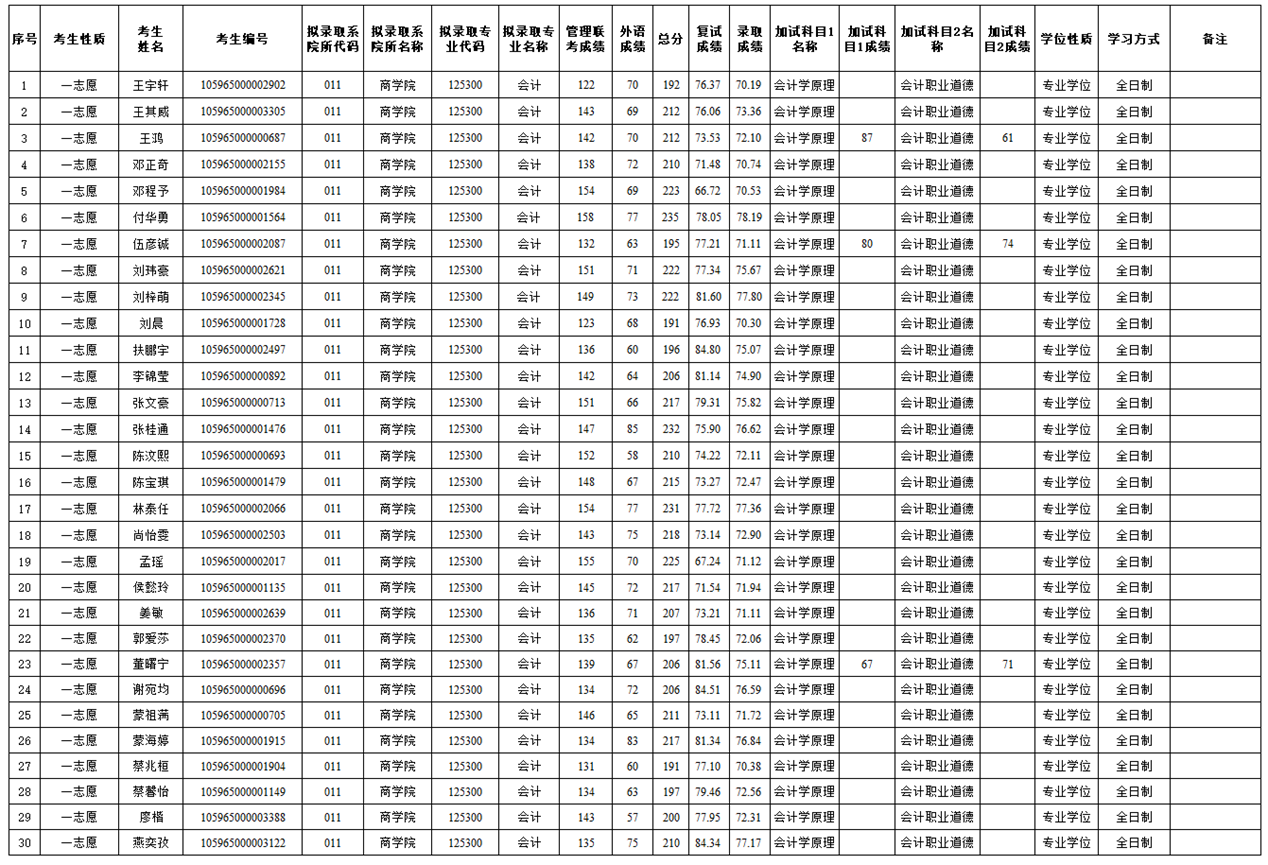 2138CC太阳集团,2138cc太阳集团官网会计专业(MPAcc)2025年硕士研究生拟录取名单(按考生姓氏笔画排序)