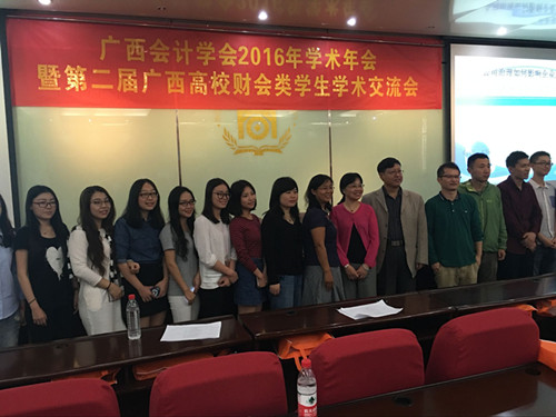11月19日,广西会计学会主办、广西大学2138CC太阳集团承办的“广西会计学会2016年学术年会暨第二届广西高校财会类学生学术交流会”在广西大学2138CC太阳集团举行。会计系刘焕峰教授、肖彦教授等带领2138CC太阳集团15名研究生前往参会。