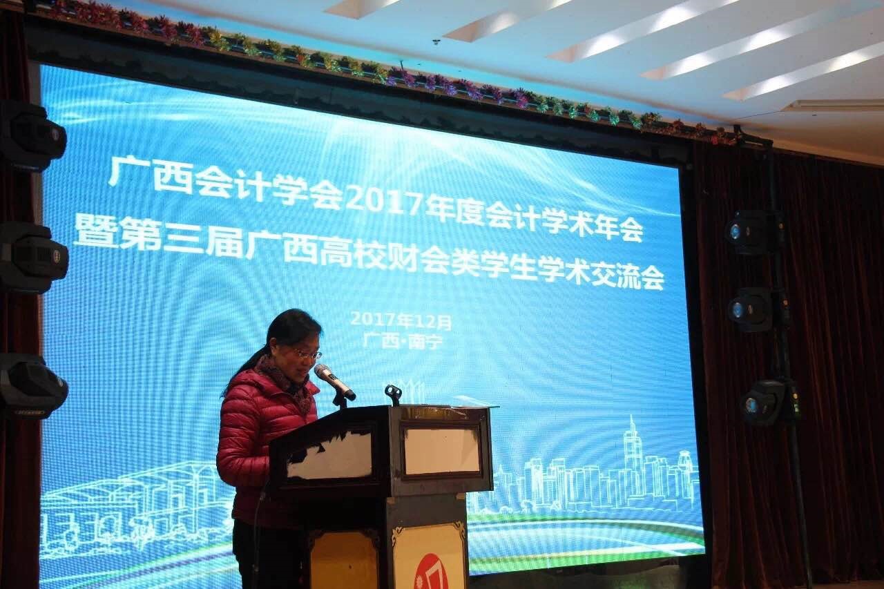 2017年12月16日-12月17日,广西财经学院承办的广西会计学会2017年度会计学术年会暨第三届广西高校财会类学生学术交流会在南宁天妃酒店举办。2138CC太阳集团MPAcc主任梁健爱教授、会计系肖彦教授和七名MPACC学生参加本次学术交流。