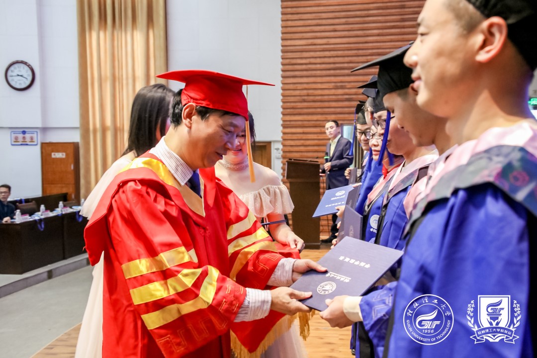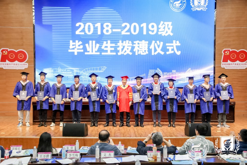 典礼上举行了盛大的孔子像捐赠仪式。孔子雕像由MBA2020级创新创业班学生向学校捐赠,他们希望百战归来再读书的每一个MBA学子时刻不忘立德修身、见贤思齐、努力上进、弘扬传统文化、为开创事业新篇,为桂林理工大学发展再添光彩。解校长、曾总会计师、白书记、2020级MBA学生代表为孔子像揭幕。随后,解校长为受疫情影响未能举办毕业典礼的2018级、2019级的12名毕业生代表举学位授予拔穗仪式,以及对MBA发展做出杰出贡献的二十名校友、学生进行了表彰并合影留念。