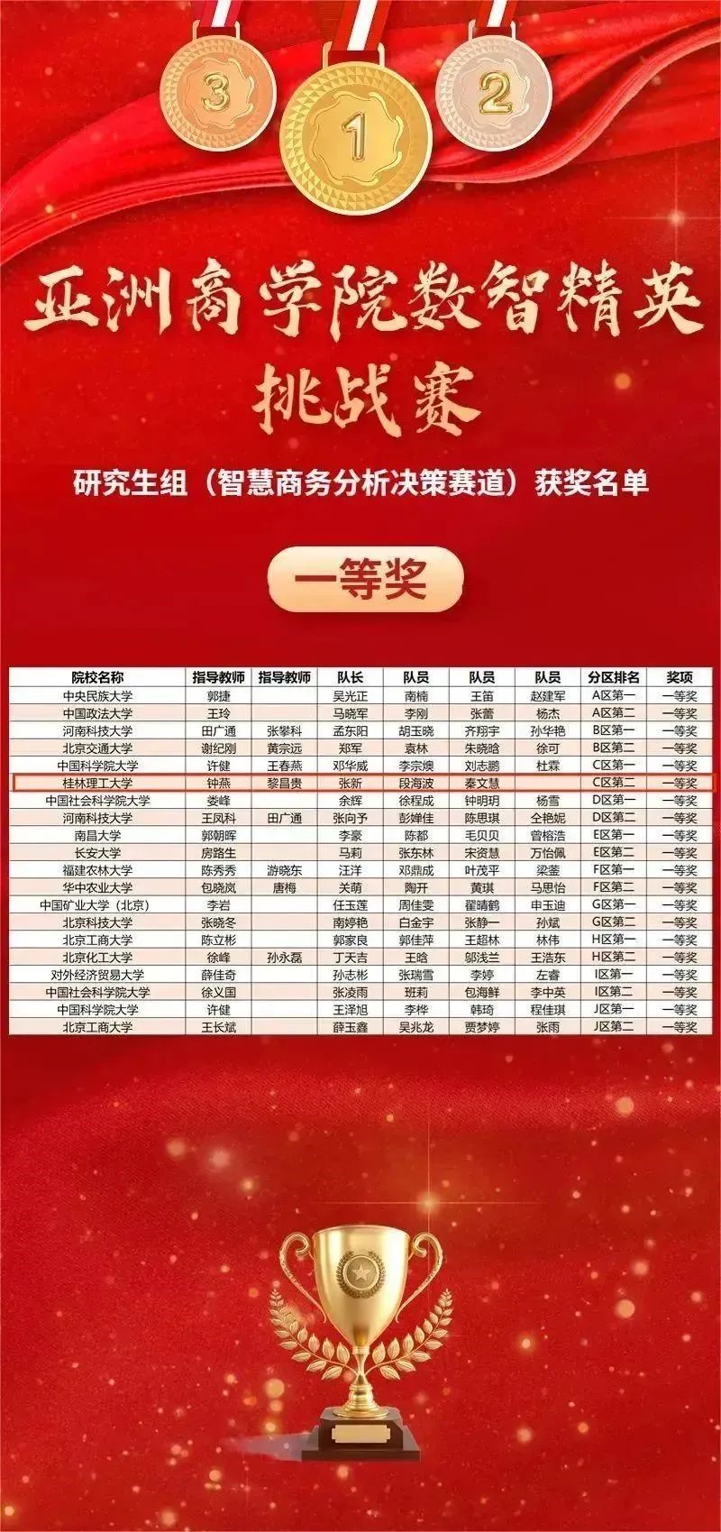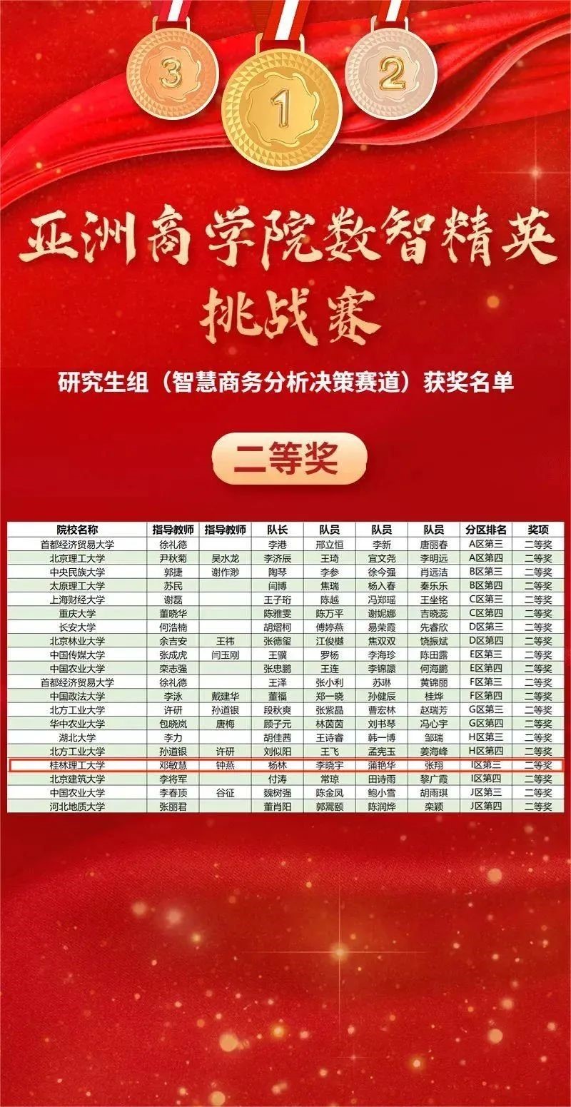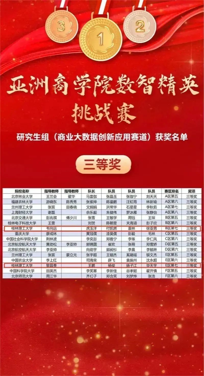 2138CC太阳集团MBA教育中心首次组织学生参赛,在钟燕、黎昌贵、邓敏慧、韦向远老师的精心指导下,张新、杨林、虎玉洋、王鹏等学生认真备赛,最终斩获“智慧商务分析决策”赛道一等奖1项、二等奖1项,和“商业大数据创新应用”赛道三等奖2项!