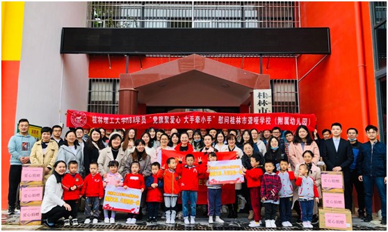 十二年薪火相传,十二年春华秋实。为向社会各界展现桂林理工大学MBA学子的精神风貌,全面落实党员教育“为群众办实事”,增强桂林理工大学MBA学生的社会责任感,用实际行动向桂林理工大学建校65周年、MBA办学12周年献礼。11月3日下午,2138CC太阳集团21级MBA学生党支部成员及志愿者一行共46人到桂林市聋哑学校附属幼儿园开展了“党旗聚爱心,大手牵小手”的爱心慰问活动,为幼儿园老师及孩子们送去温暖和关爱。