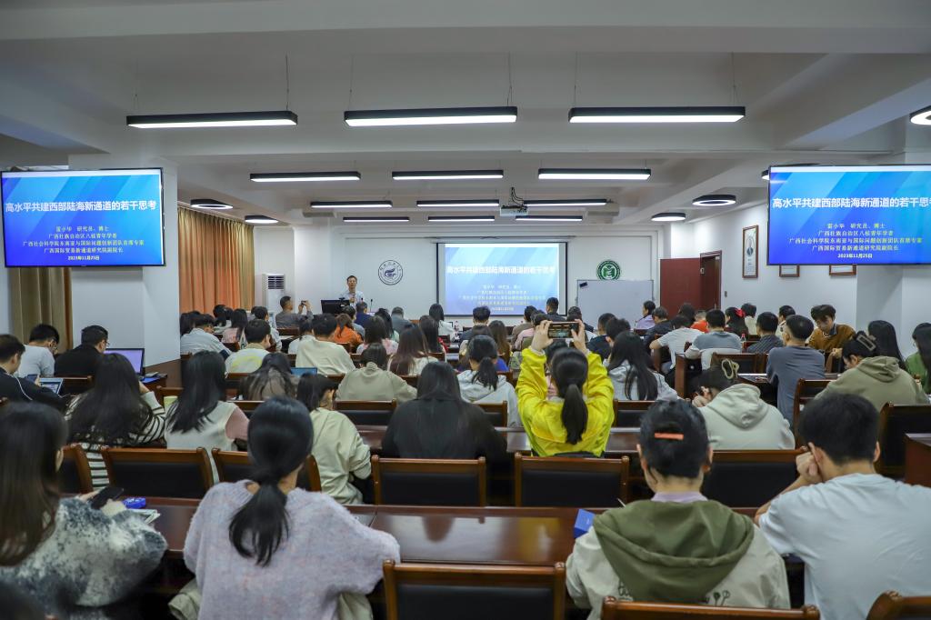雷小华研究员围绕西部陆海新通道建设的主要方面,阐述了西部陆海新通道的前世今生、重要背景和意义、主要内容及成效,就如何讲好西部陆海新通道的故事提出了自己的独到见解,并剖析了高水平共建西部陆海新通道面临的机遇与挑战、方向与重点。雷小华研究员系统地梳理了西部陆海新通道建设的历史脉络、现实成果、未来方向,从多维度进行思考和研究,展示了高水平共建西部陆海新通道的全景图。最后,雷小华研究员对参会师生提出的相关问题进行了详细地解答,参会师生们表示收获颇丰。