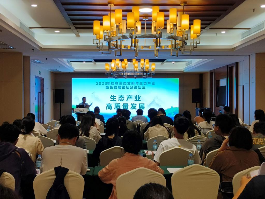 在“生态产业高质量发展”分论坛上,与会专家学者就桂林平乐生态运动模式、科技创新支撑水泥固废转化、ESG理念与矿业绿色发展、生态产业化共同富裕效应、党建引领企业参与乡村生态振兴、桂北金槐产业发展、广西旅游产业发展、生态环境污染的劳动力就业、环境规制与产业生态化转型、环境政策设计与产业碳解锁、桂林油茶产业发展、赤泥和脱水矿泥协同处置技术等进行了深入探讨,并提出了很多很好的意见建议。