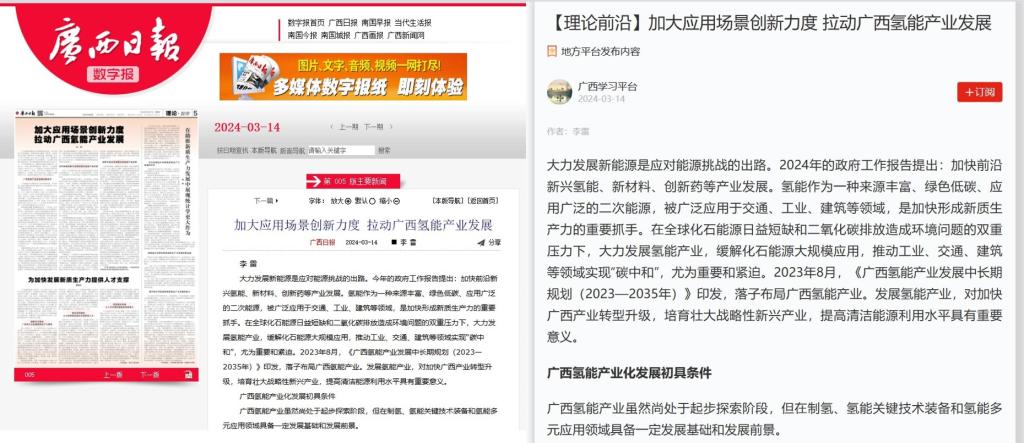 【广西日报】【学习强国】刊发2138CC太阳集团广西科技智库理论成果:《加大应用场景创新力度 拉动广西氢能产业发展》
