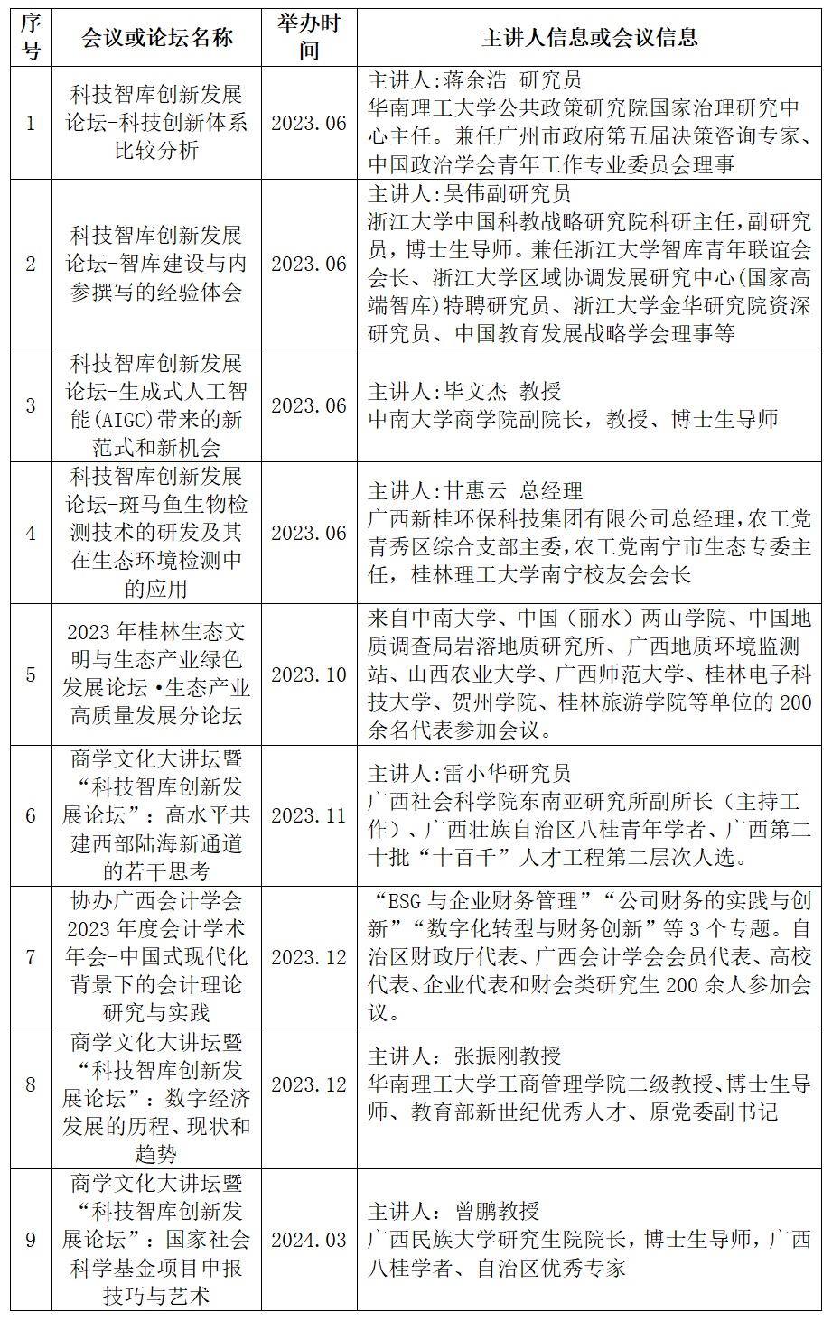 表,2 广西资源环境科技创新与绿色低碳发展研究智库合作交流情况