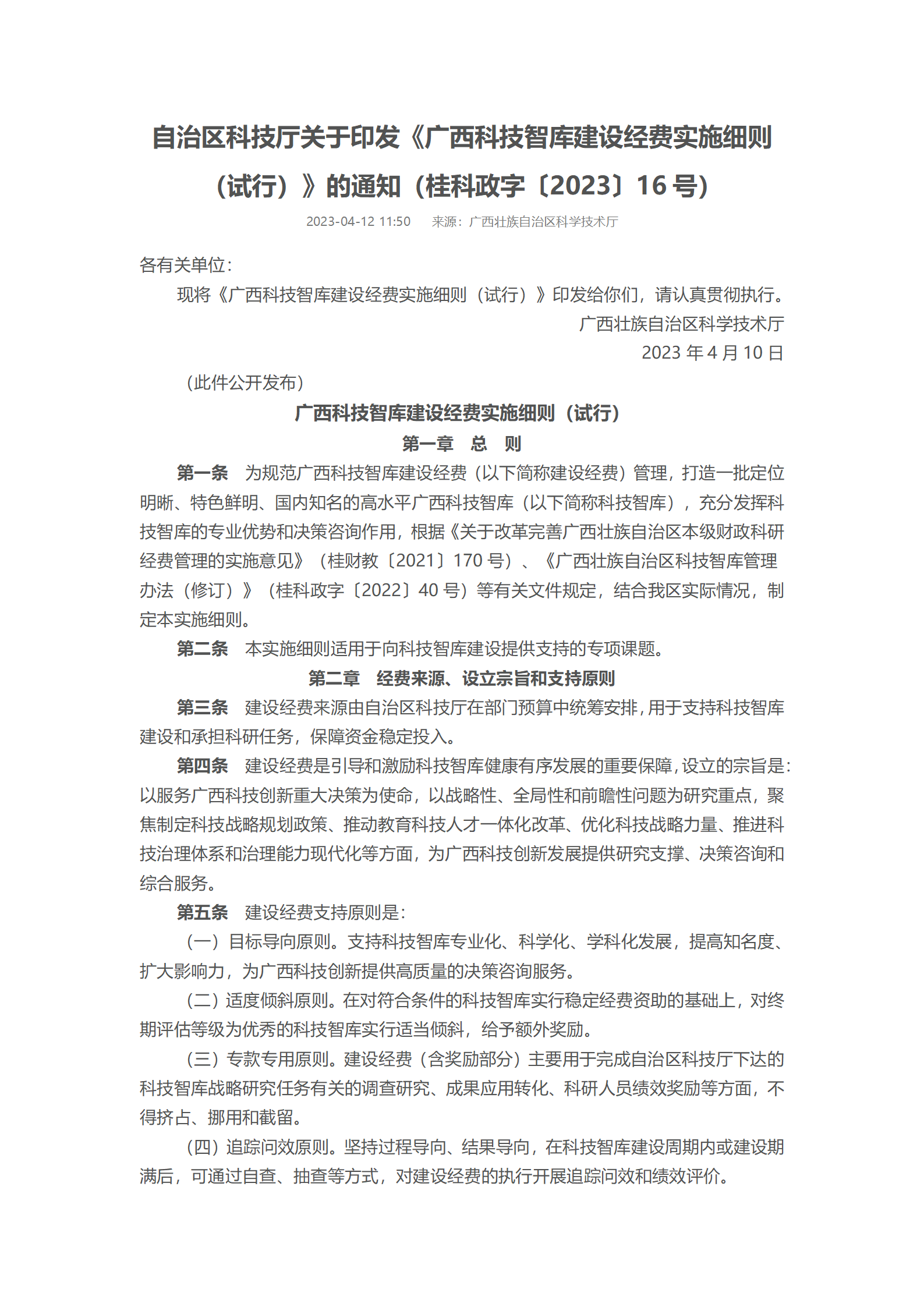 (桂科政字〔2023〕16号)自治区科技厅关于印发《广西科技智库建设经费实施细则(试行)》的通知