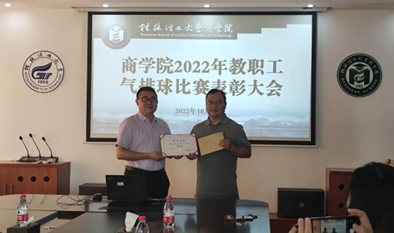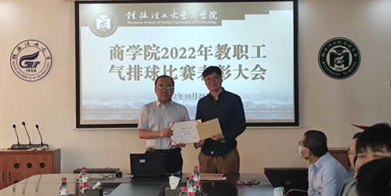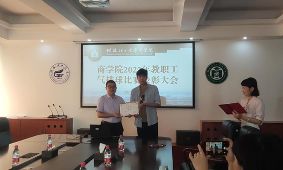 本次教职工气排球比赛由专业教研室、党政办、学工办、实验室、MBA中心组成的5支联队参赛。经过两天的激烈角逐,电商国贸联队突出重围,夺得冠军。在颁奖仪式上,李雷为第一名的电商国贸联队、第二名的人力工管房产联队颁发荣誉证书和奖金,白永生为第三名的物流MBA中心联队、第四名的学工实验室联队、第五名的营销党政办联队颁发荣誉证书和奖金。
