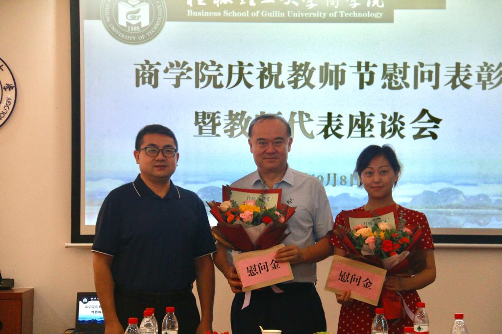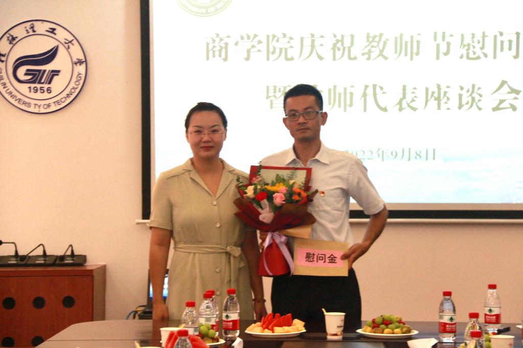 其次,学院各位领导向受表彰的教师代表送上了鲜花和慰问金。受表彰教师代表结合自身在教学、科研上的经历向与会的各位老师做了经验分享和交流,同时对学院的关心和支持表示感谢,他们表示继续将全身心投入到教学科研中,以实际行动为学院发展做出新的更大贡献。