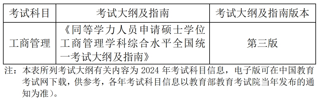 工商管理学学科综合水平考试科目、学科、考试大纲及指南使用对照表如下所示: