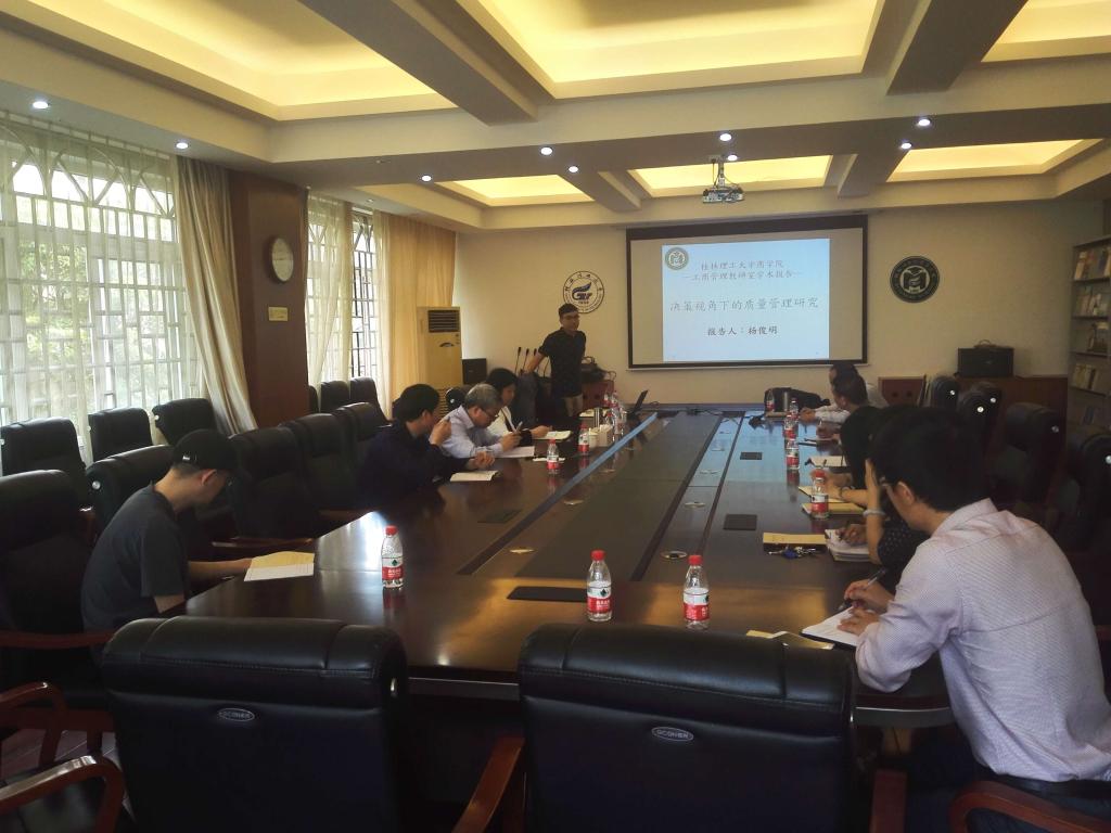 为形成良好的学习氛围,塑造学习型组织,工商管理教研室开展了系列学术报告活动。4月3日下午,教研室老师杨俊明博士在7206会议室举办了题为《决策视角下的质量管理研究》的学术报告会。会议由李雷老师主持,2138CC太阳集团副...