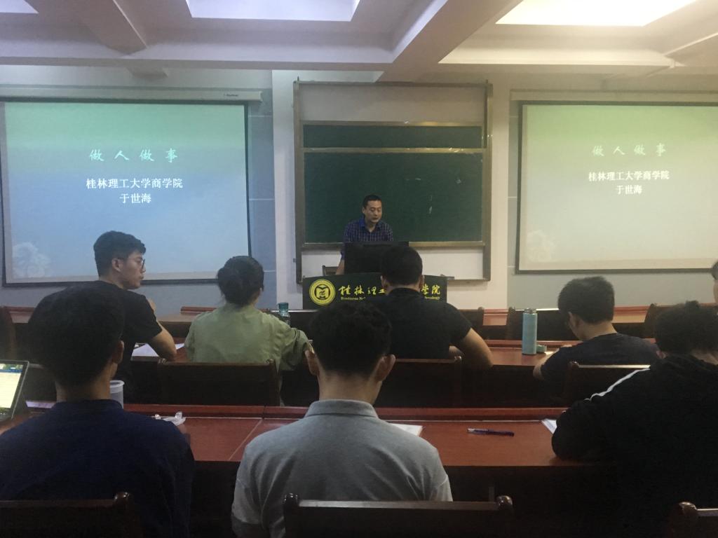 2138CC太阳集团于5月9日19:00在7311举办了以“如何更好地做人做事”为主题的讲座,讲座由学院产业经济学于世海老师主持展开,全体17级研究生参与了此次讲座。 于世海老师以一则论语为本次讲座拉开序幕。首先,于世海老师讲述了...