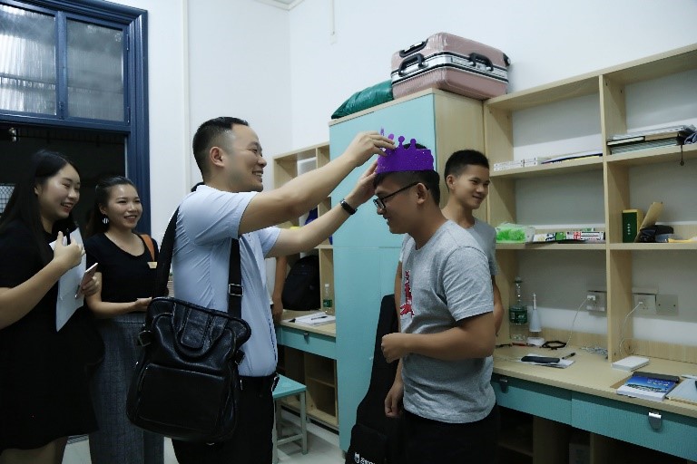 为了解新生到校后的生活情况、住宿状况及思想动态,消除新生对新环境的陌生焦虑感,9月9日晚19:20左右,2138CC太阳集团党委书记周章明、院长连漪、副院长蒙永亨、党委副书记沈菲菲、2018级各班班主任和年级辅导员等一行人,走访学院2018级新生宿舍。在走访过程中,学院领导、班主任和辅导员老师首先询问了新生们在新环境中遇到的困难和问题,针对大家的困惑给出有效的解答建议。叮嘱同学们在集体中应互帮互助、相互包容,注重宿舍第二学...