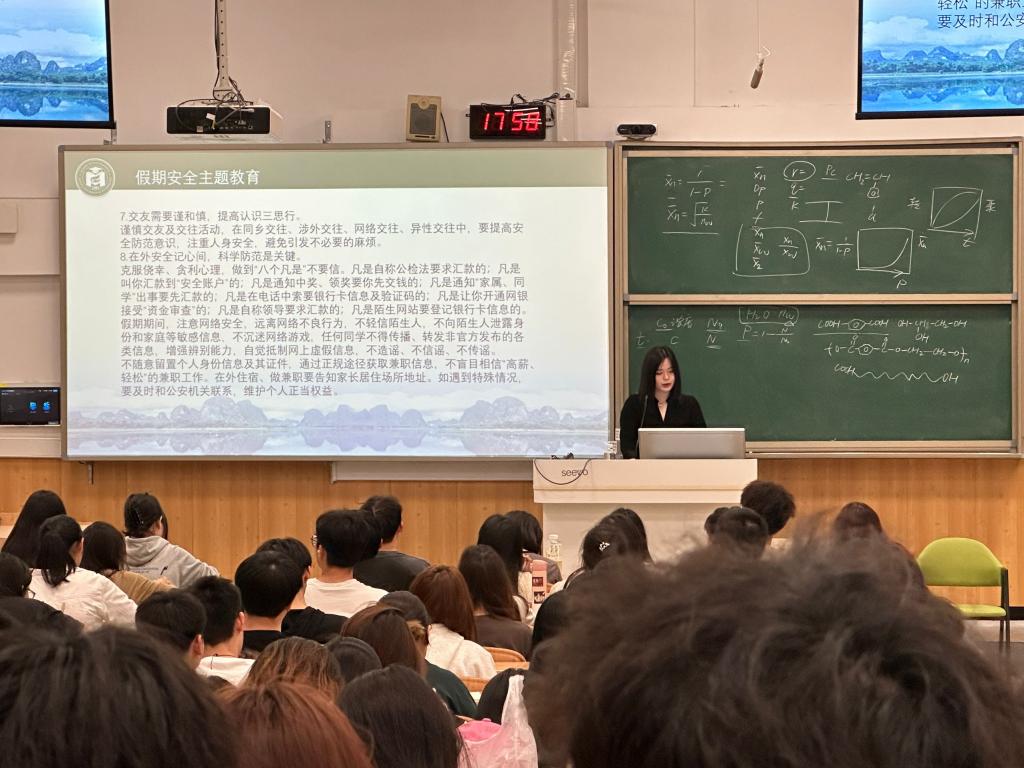 为进一步做好学院清明节和“壮族三月三”假期期间学生管理工作,3月29日至31日,学院通过学工例会和大学生成长成才课,部署节假日期间各项安全工作,并面向全体学生开展安全教育。在学院学工例会上,学院党委副书记饶蠡传达了学校学工处关于清明节和“壮族三月三”节假日期间的学生工作安排和要求,并结合学院工作实际,对学院假期期间的学生工作和安全稳定工作进行了布置,明确了工作任务,提出了具体要求。在成长成才课上,各...