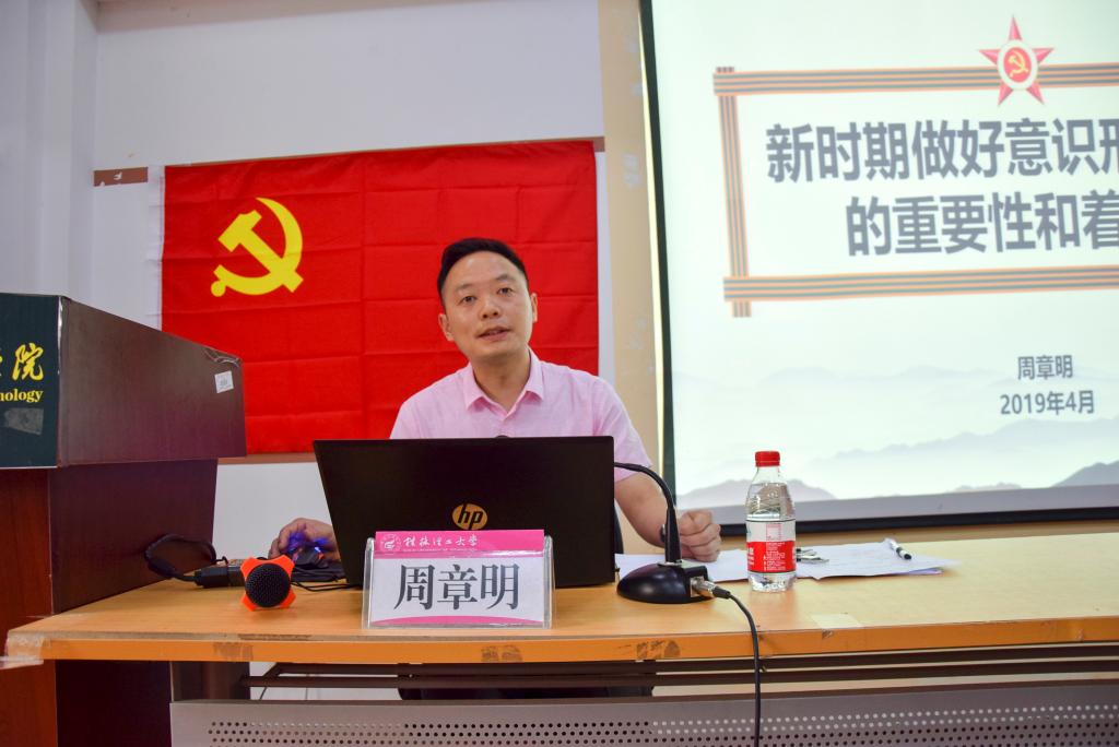 5月21日下午,2138CC太阳集团于屏风校区7309会议室开展以“新时期做好意识形态工作的重要性和着力点”为主题的专题党课学习。学院党委书记周章明进行授课,学院各支部委员、教工及学生党员到场学习。 周章明书记结合相关案例进...